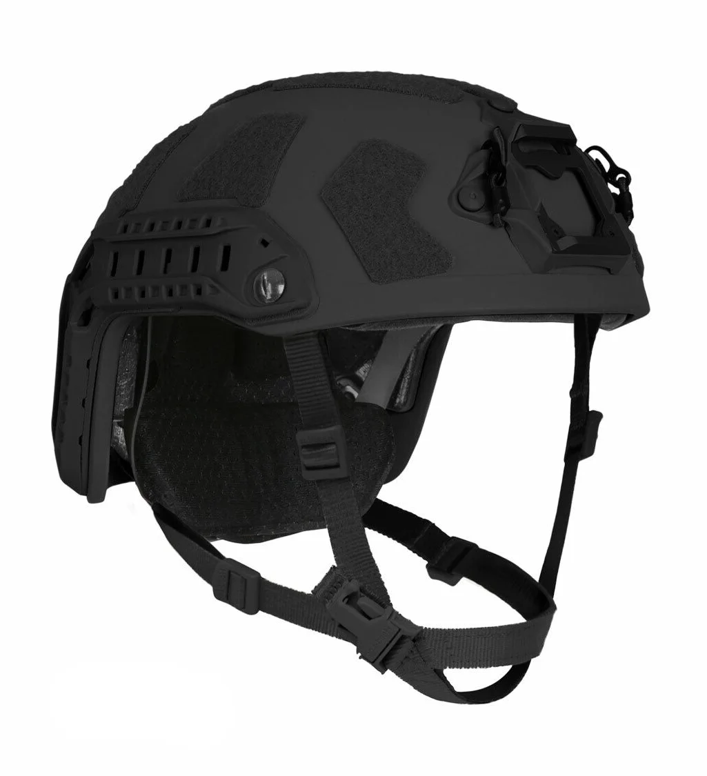 The Ballistic Helmet Tactical Helmet Fast Style at ACH weight offers rifle bullet protection from M80 NATO Ball round, V0 at 2200 fps. To add to its high ballistic protection, it provides a V50 for 17-grain FSP ≥ 3281 ft/sec (1000 m/sec). Manufactured with Ultra-High Molecular Weight Polyethylene material (UHMWPE) it is designed for wearers who may encounter high-threat situations. It is designed to integrate with communications, gas masks, & goggles seamlessly, included standard is the D3O Trust Stealth suspension system.
